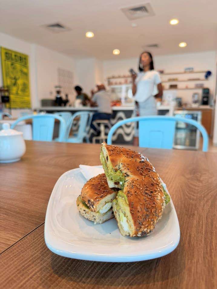 The menu reflects thoughtful curation rather than excess. Expect classic espresso drinks alongside pour-over options such as V60, Aeropress, and Origami. There is also a creative wellness line-up: Matcha, Ginger Beet Latte, Golden Latte and Léo’s visually striking and very yummy Blue Latte, crafted with blue spirulina and yes, a bit of coconut condensed milk.