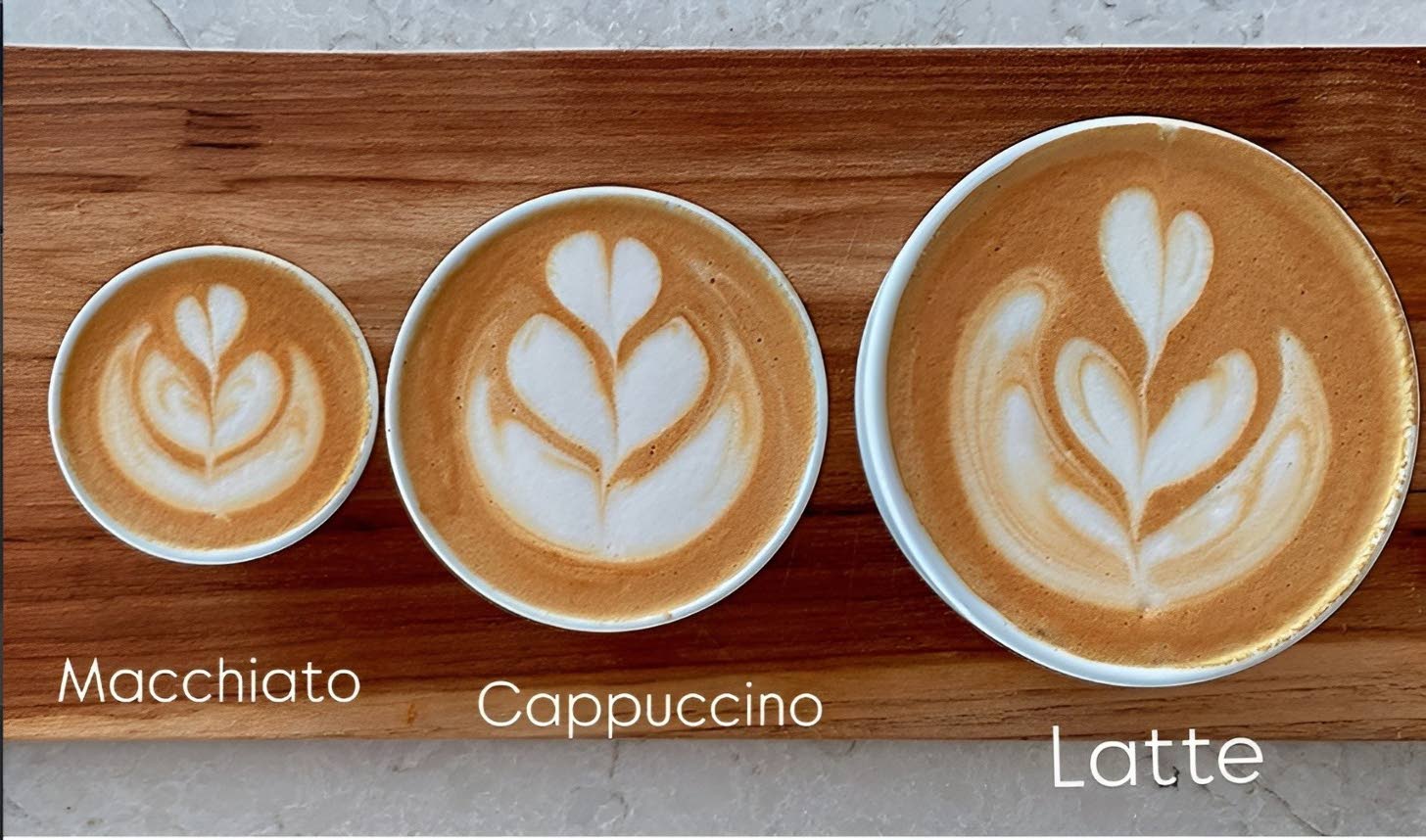 A visual guide to the varying milk-to-espresso ratios that defines the macchiato, cappuccino and latte coffees. (Photo: Instagram/@rio.byleomoco)