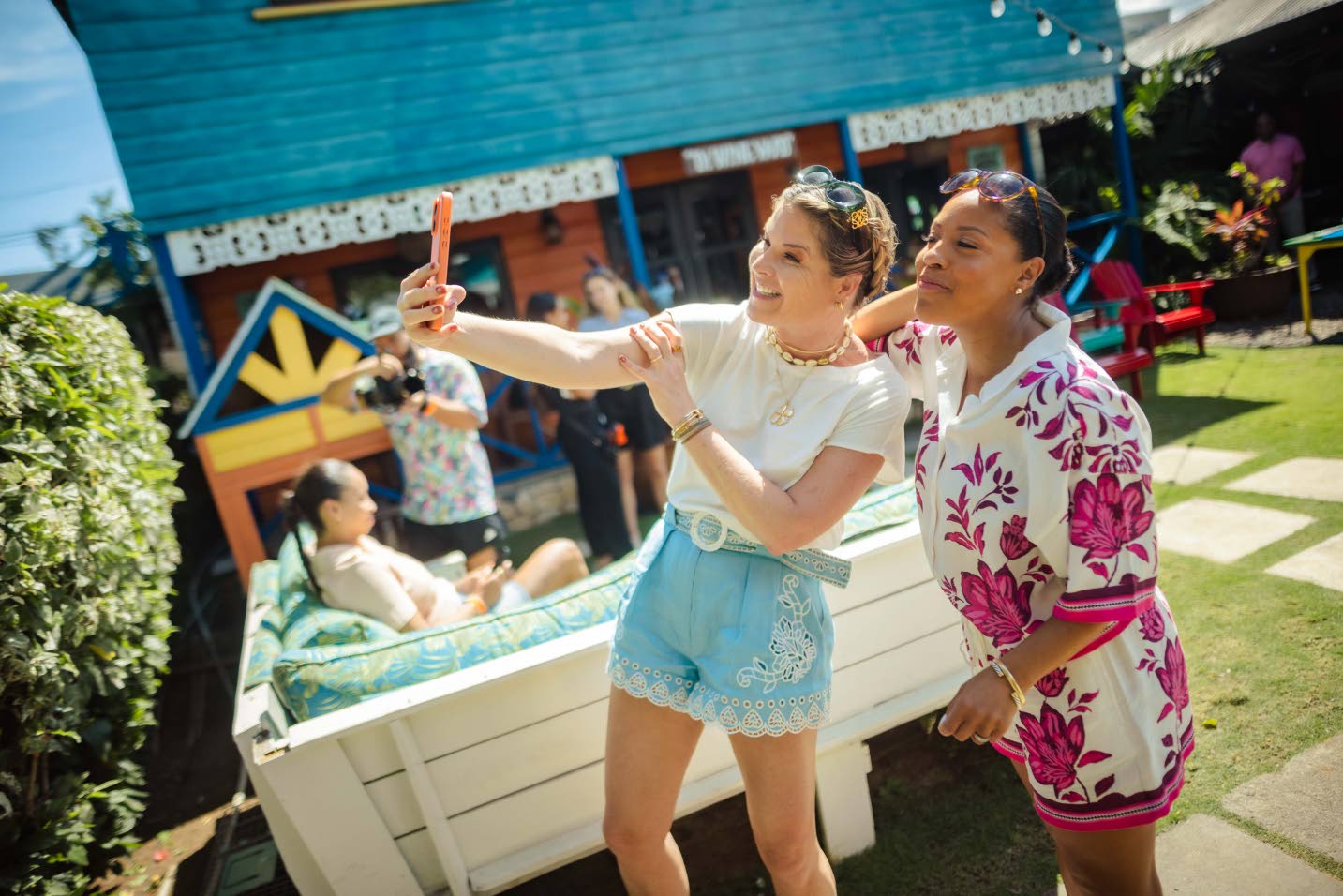 NBC’s TODAY Show hosts Jenna Bush Hager (left) and Sheinelle Jones snapped an ussie at popular eatery Miss T’s Kitchen in Ocho Rios. (Photos: Dacx Productions)