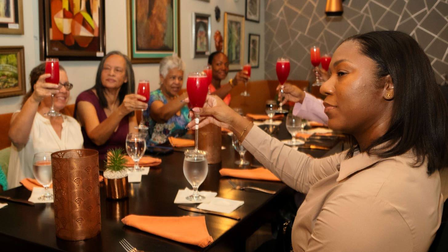Women in attendance at the recent Women & Wealth networking event raise their glasses in celebration of sisterhood.