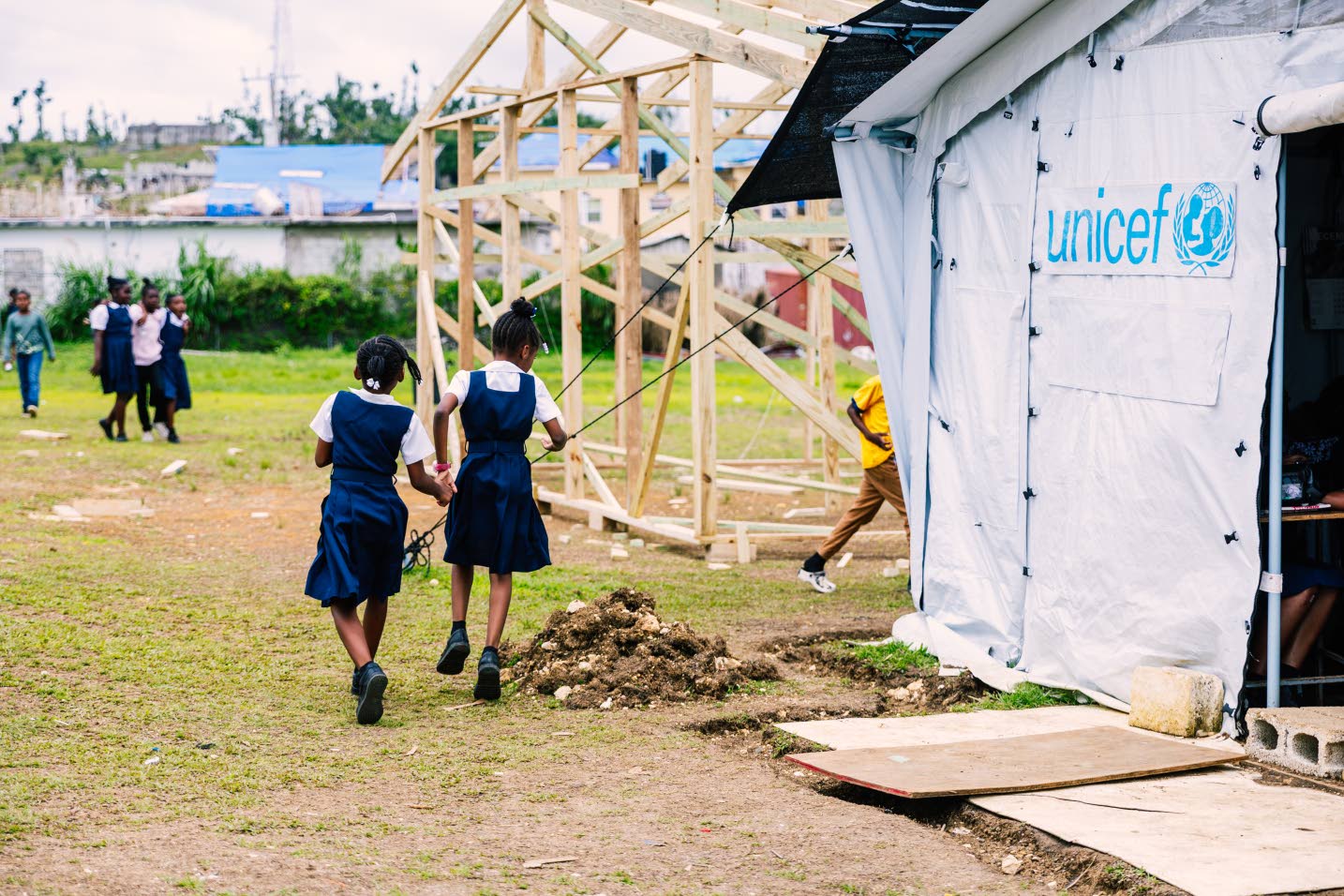 Category 5 Hurricane Melissa disrupted schooling in more than 600 schools, particularly in vulnerable communities where families were already facing economic strain. Classroom tents, provided by UNICEF, complemented by the Education Management Information System (EMIS), have been helping schools bring students back to learning.