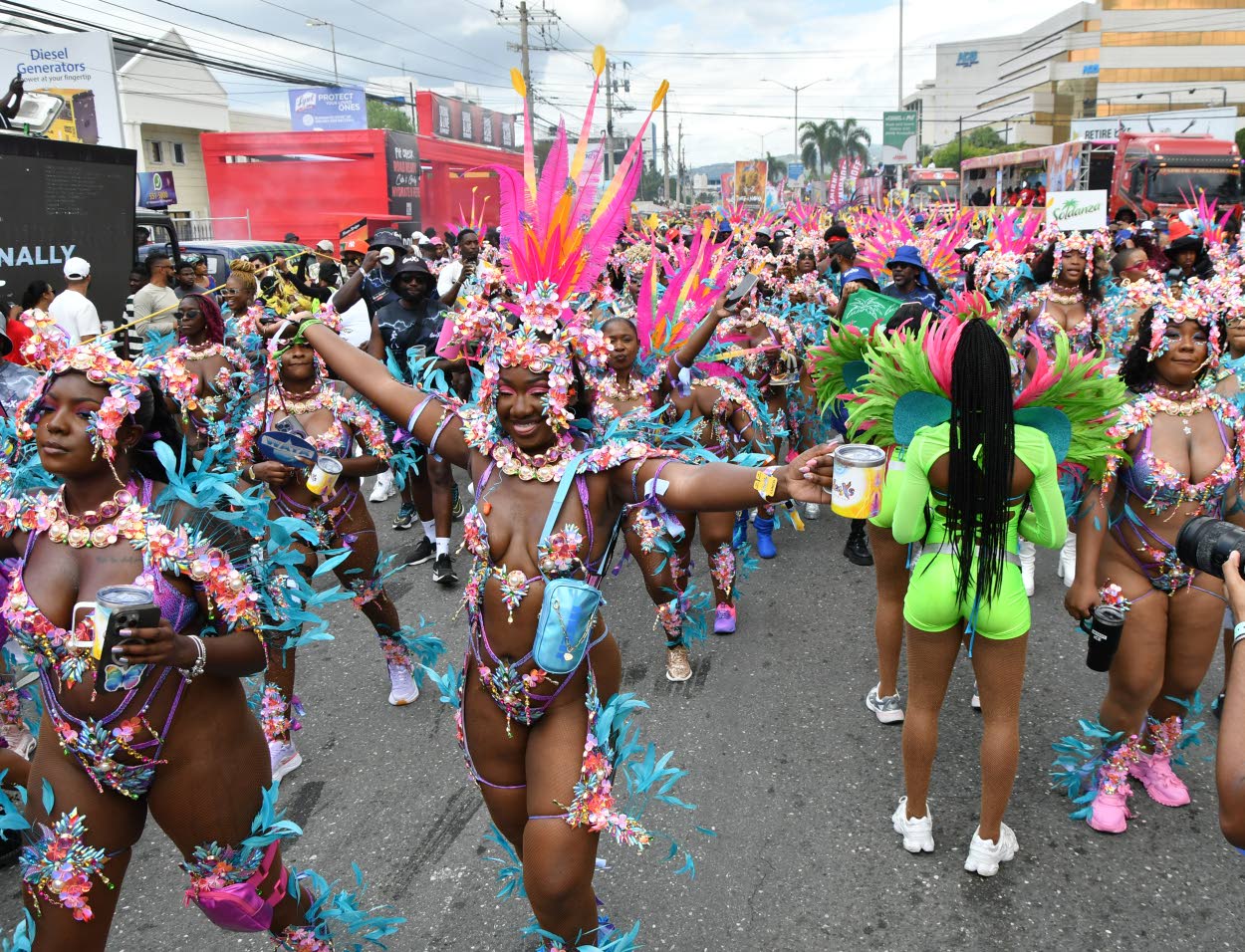 The joy is etched across the faces of these revellers as they enjoyed themselves on Knutsford Boulevard during Carnival road march on Sunday. (Photo: Garfield Robinson)