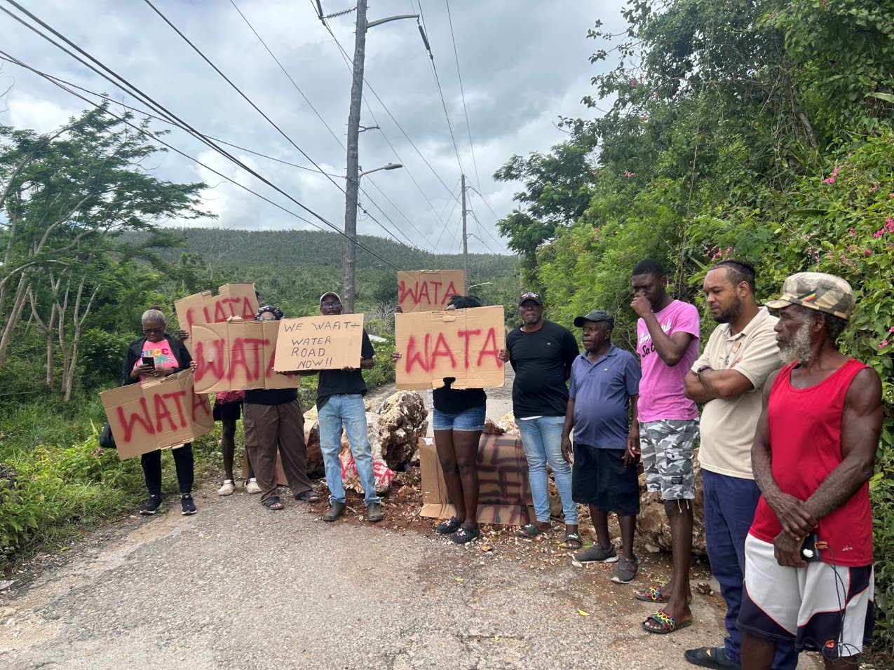 On Monday angry residents, who hoisted placards inscribed with the word “Wata”, said the area from Salt Marsh Square to the adjoining Davis Pen community has been without piped water for nearly six months, though they have repeatedly contacted NWC for relief. They said although an NWC team briefly worked in the area over three weekends, there has been no further help in the past five to six weeks, leaving them without the precious commodity. As a result, residents have been forced to buy water regularly — but this costly fix is becoming increasingly difficult. They are urgently appealing to the relevant authorities to intervene and restore their water supply.