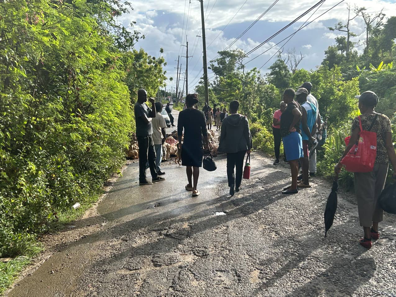 Shortly after 5:00 am Monday, large boulders were placed on the road, blocking motorists who travel between Salt Marsh Square and the adjoining Davis Pen community. The obstruction brought vehicular traffic to a halt, leaving commuters, including students and workers, stranded.