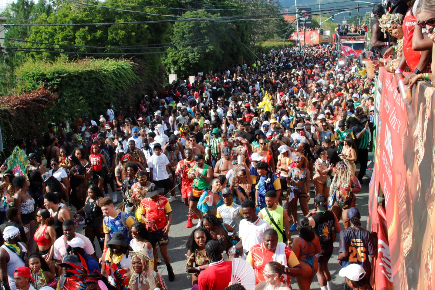 The parade snakes through the streets.