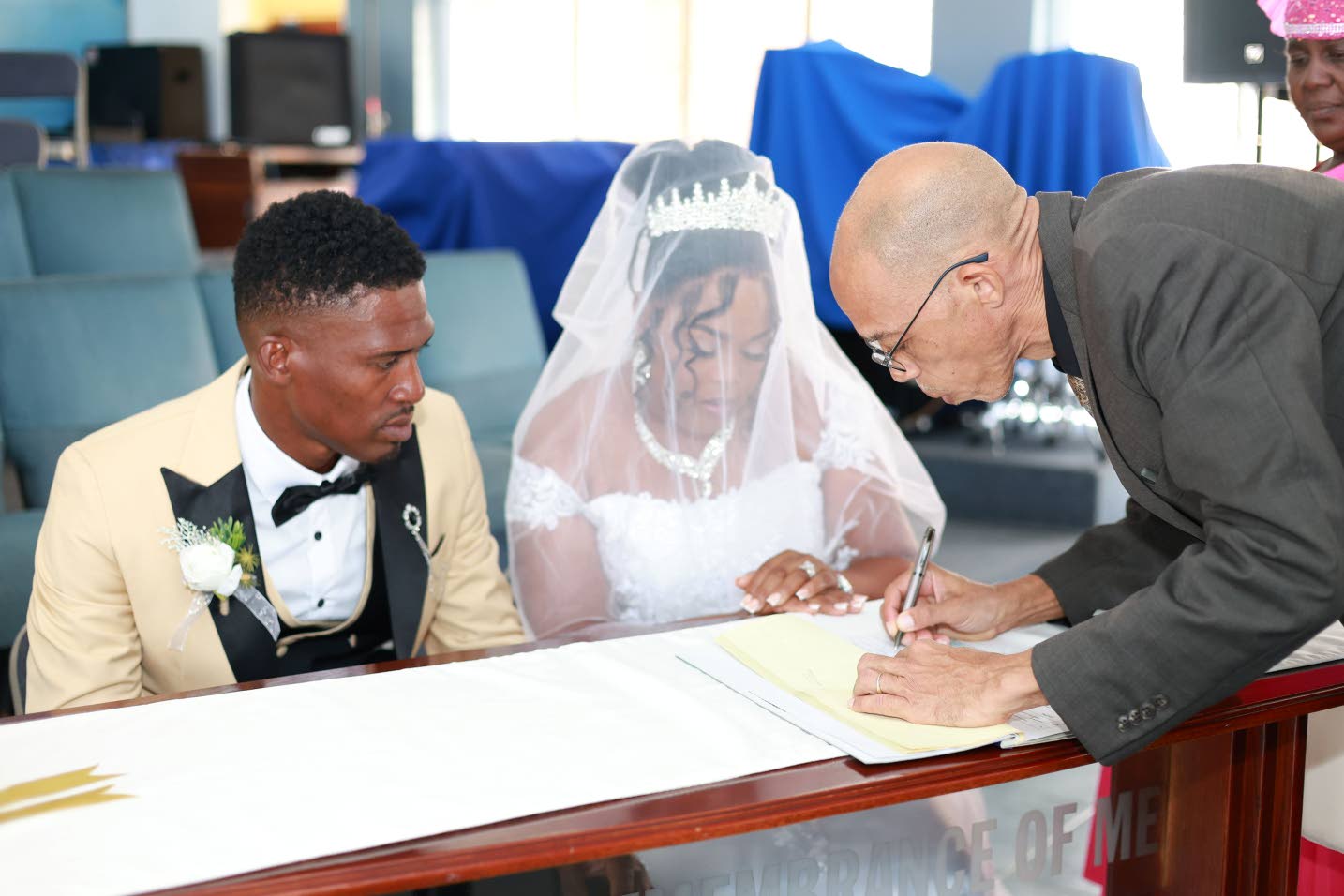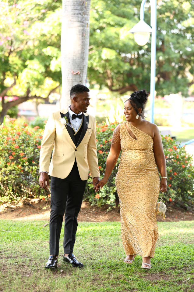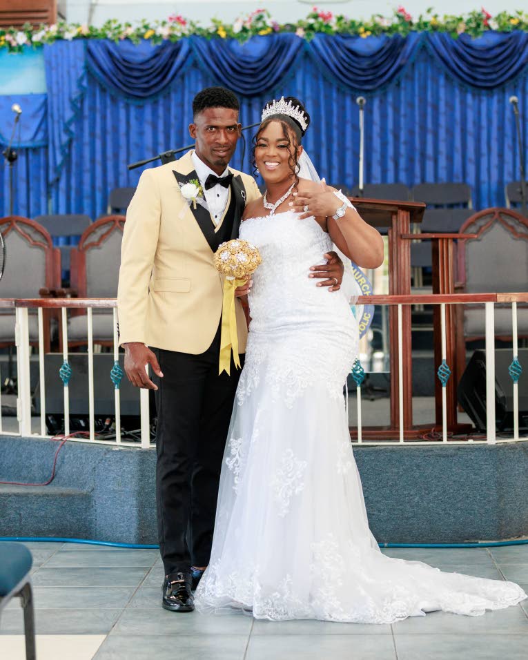 On January 31, 2026, at Kingston’s Bethel United Church of Jesus Christ, Adriana and Geoncarlo exchanged vows in an intimate ceremony. Dressed in a mermaid-style gown, Adriana walked up the aisle to Perfect by Ed Sheeran. Escorted by maid of honour Dione Baker, the bride proceeded towards the altar to join her awaiting groom.