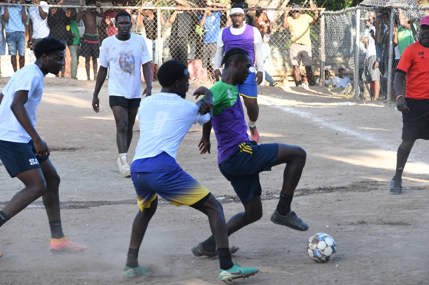 Members of the Gordon Road team, winners of Craig Town Easter League football tournament, celebrate with former Member of Parliament Dr Omar Davis (left), one of the figures behind the creation of the competition, after they were presented with the trophy.(Photo: Joseph Wellington)