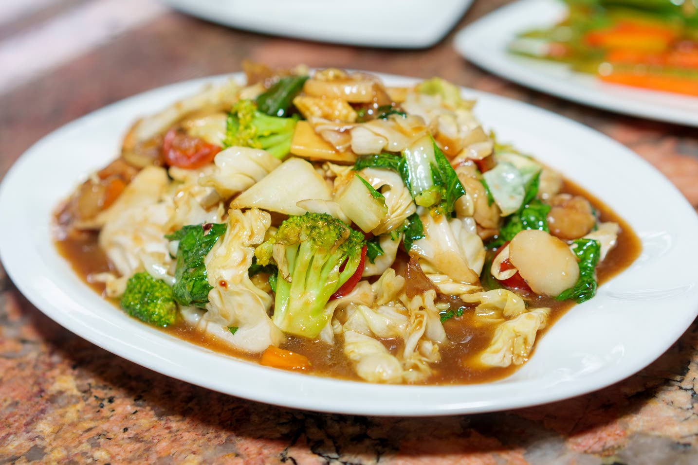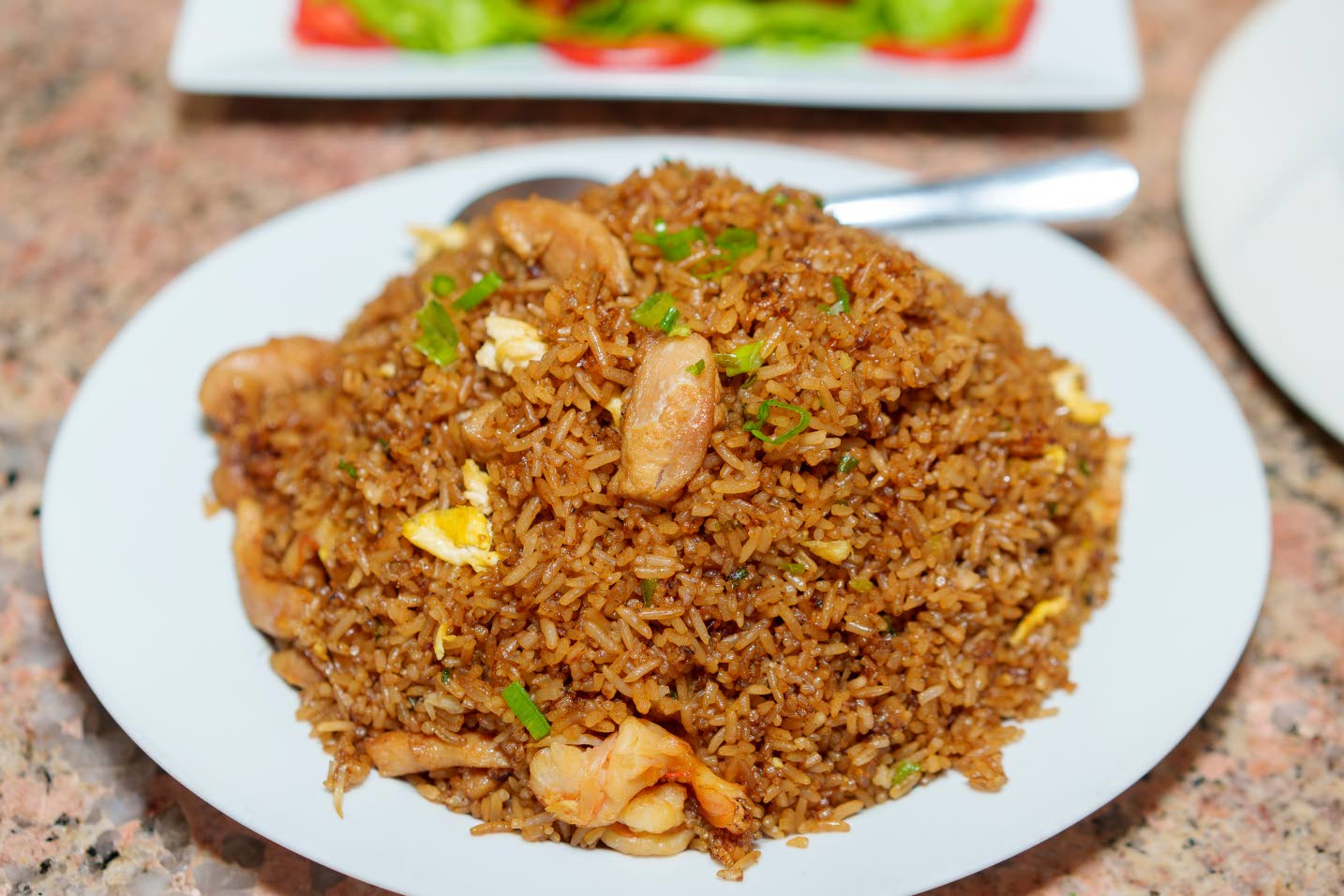 As the meal unfolded, the table quickly filled with a colourful spread of dishes including barbecue glazed pork belly, baked mac and cheese, sweet and sour fish, and a generous portion of chicken and shrimp chow mein. The pork belly delivered rich, smoky barbecue notes with a satisfying tenderness, while the baked mac and cheese offered a comforting, creamy counterpoint. The sweet and sour fish added a bright balance of tangy and savoury flavours, and the chow mein — loaded with both chicken and shrimp — was hearty, well-seasoned and satisfying.