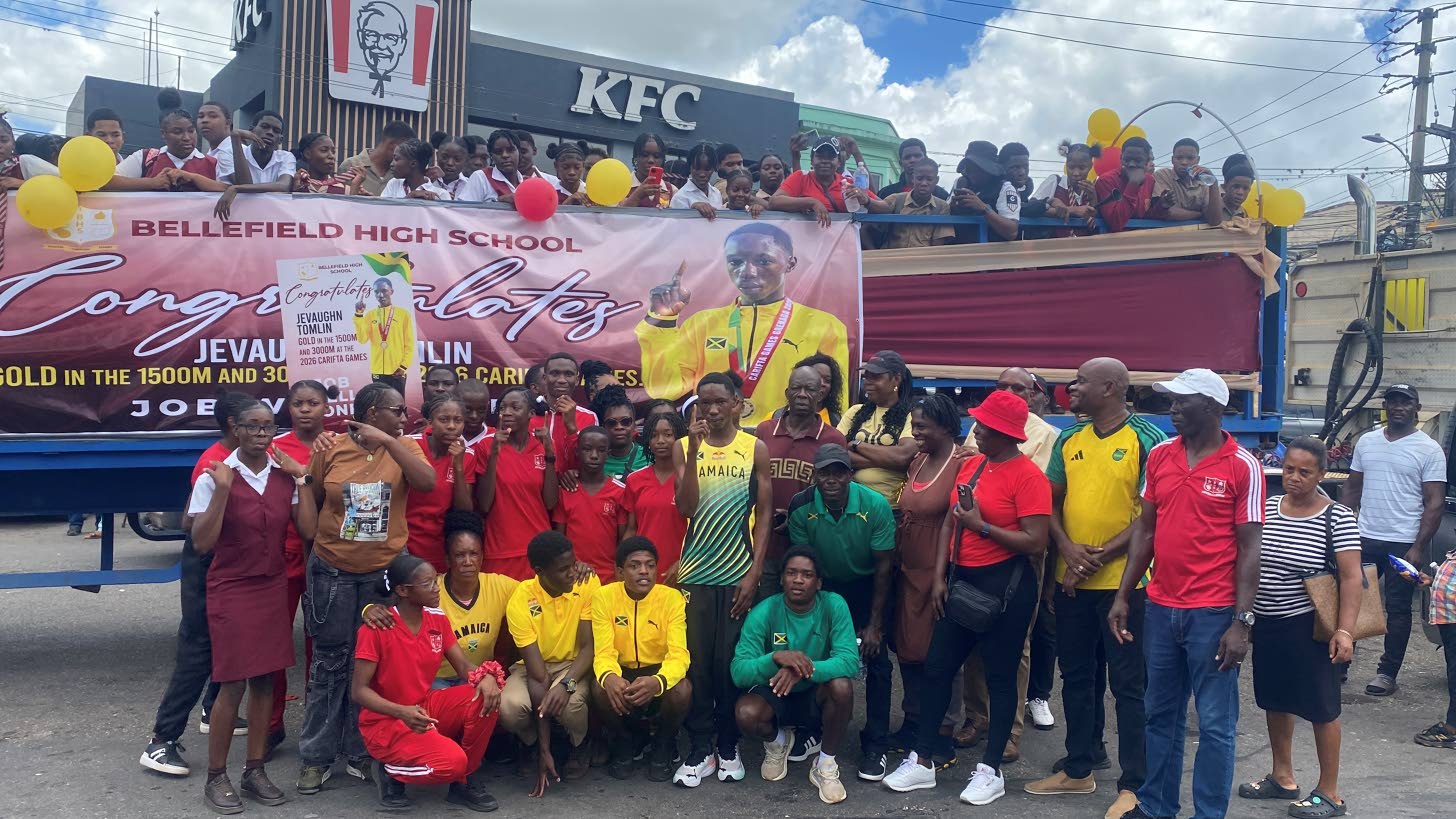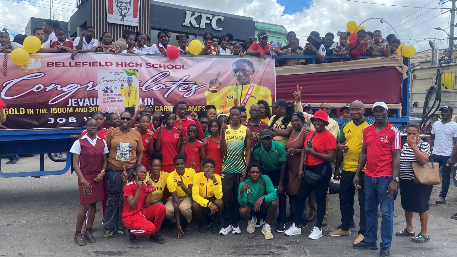 MANDEVILLE, Manchester — There was a celebratory atmosphere here on Wednesday as students and staff from Bellefield High gathered in the Mandeville town centre to celebrate their star athlete Jevaughn “Bubbie” Tomlin, who mined gold twice at the recent Carifta Games in Grenada.