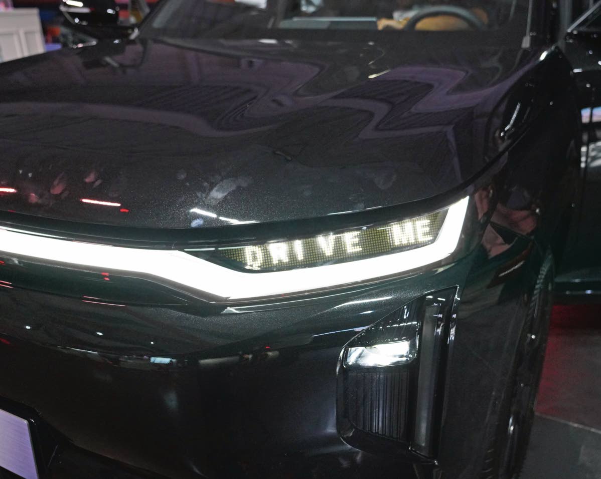 The GAC S7 has AI emotional headlights that can display animation and customised text. (Photo: Rory Daley)
