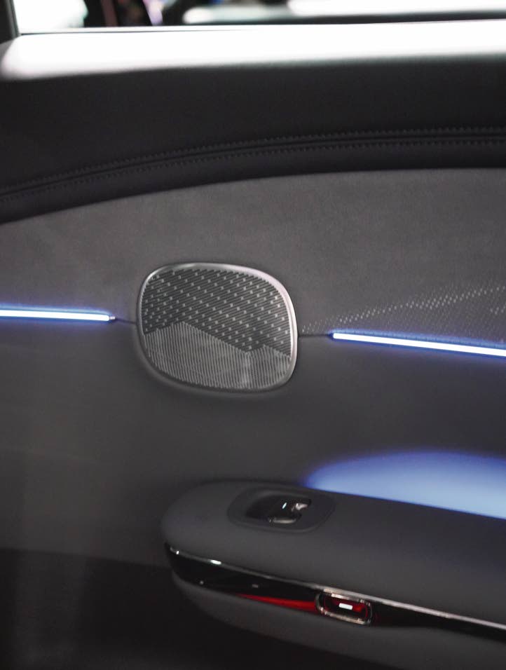 Apple CarPlay, Android Auto, and an AI voice assistant are standard, as is the 1640 watt 22-speaker audio system. Acoustic privacy glass keeps the interior quiet and relaxing. There is a refrigerator that cools and heats.