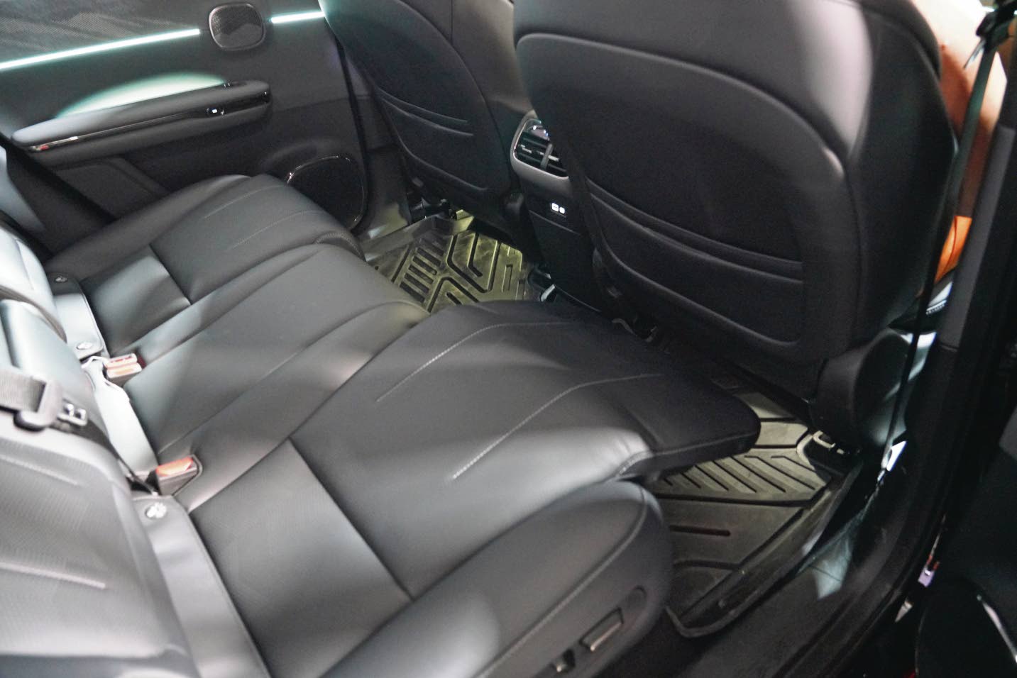 The rear seat, behind the front passenger, has a full recline function due to integrated electronic leg support. (Photo: Rory Daley)