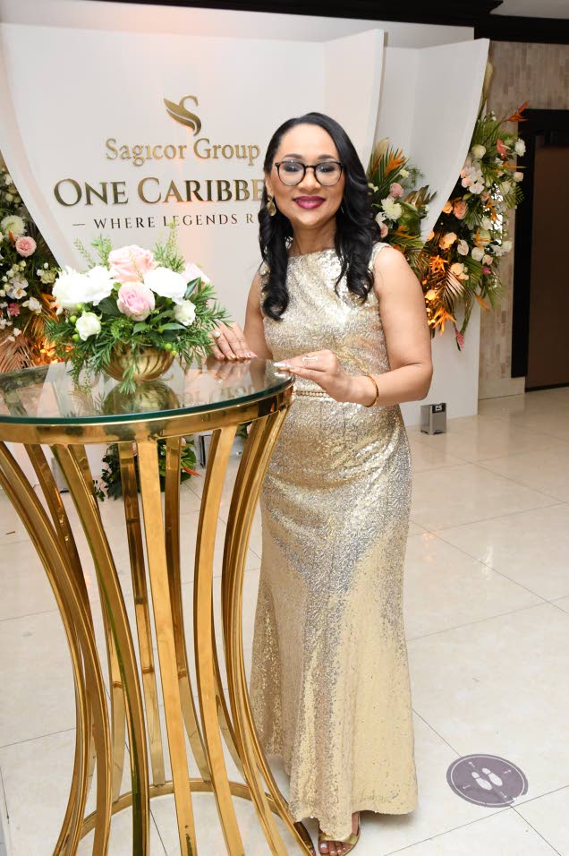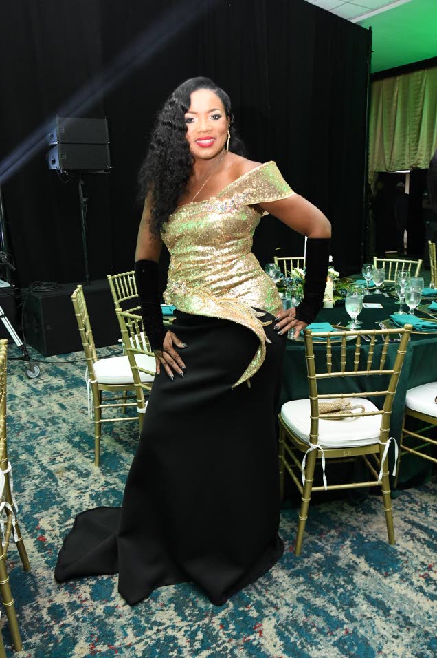 Gild President Tashika Jones, financial advisor, Holborn Branch, oozed sass in a stunning Fashion Nova Vanya Draped Metallic Gown as she accepted the Sagicor Life Rookie of the Year award. Naphtali Junior