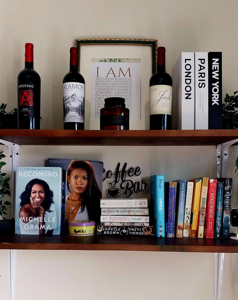 All aspects of Shantal’s personality and experience are reflected in the space. From her love of travel (over 30 different countries), cafés are her meeting place with friends; or where she works, or simply a space where she sits and reflects while exploring a new country; her passion for books hence the cosy nook with chairs and books, and later, the creation of a small outdoor library where people can pick up a book, sit and read for a while and enjoy the atmosphere. She also created a special wall featuring her father (and siblings) as a tribute to his memory, while honouring his name and elements of the Rastafarian culture.