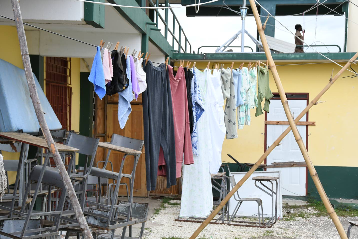 Clothes are seen on a line at a section of Petersfield High School in Westmoreland, which currently has more than half the people still in school-based shelters following the devastation of Hurricane Melissa. (Photos: Karl Mclarty)