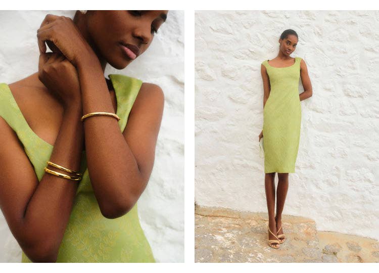 Tami Williams in the cap-sleeved Tuileries vine Romy jacquard midi dress.(Photo: Rasmus Weng Karlsen)