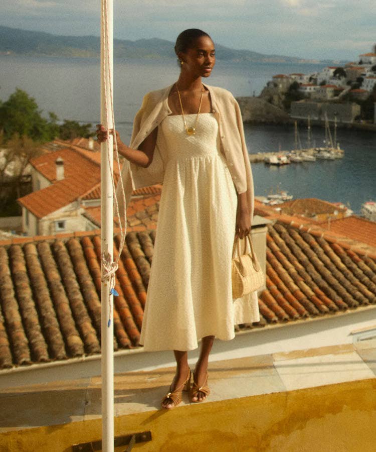 Photographed earlier this year in Hydra, Greece — with the new collection inspired by the Italian Amalfi Coast — the Jamaican supermodel serves a sublime array of fresh-off-the-rack womenswear looks.