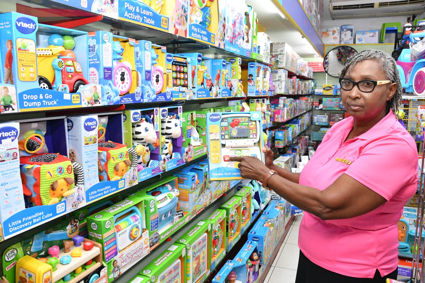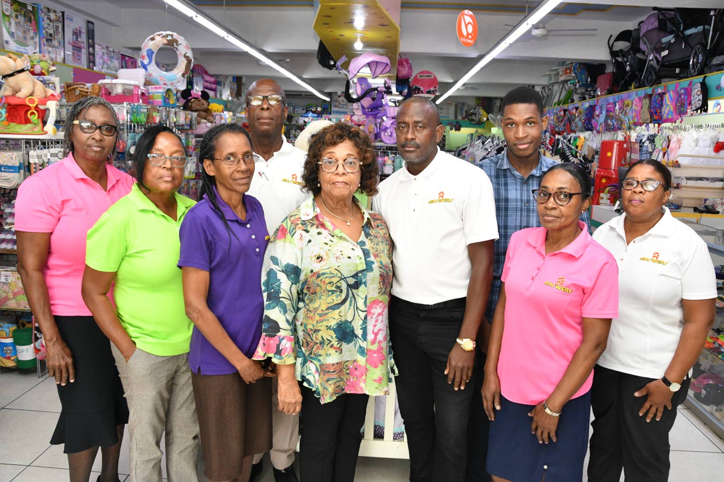 Answers For Children Managing Director Marilyn Beckford (centre) and her team (from left) supervisors Janet Gocoul, Christine Lewis, Stedman Dennis; cashier Gloria Amber Russell, Sales Representatives Michael Frater, Joshua Vernon; Sales Clerk Mila Morris; and supervisor Janet Beckford. (Photo: Joseph Wellington)