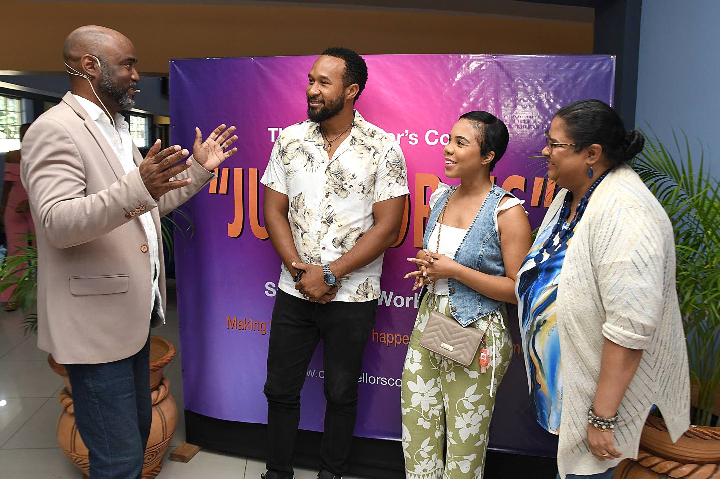 Rev Chris Brodber (left), pastor, counsellor & columnist, speaks to (from left) couple Reneil and Jhunelle Wong and counsellor & lecturer Yolanda Lee (right) at the Counsellor’s Couch Just For Us marriage seminar at Hope Auditorium in Kingston on Saturday, April 25. (Photo: Naphtali Junior)