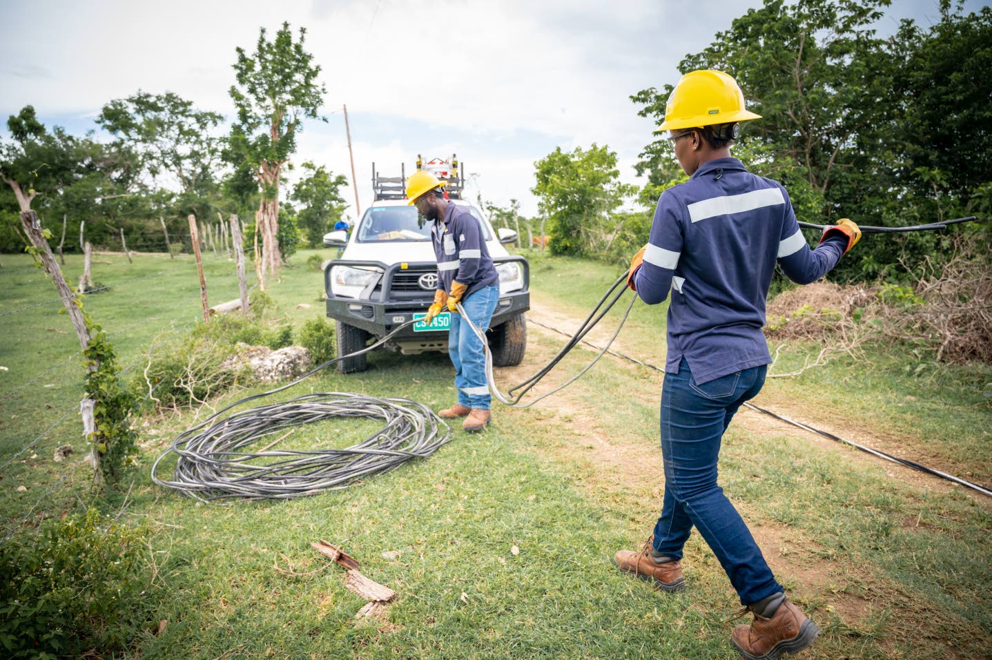During her almost two years with JPS, Blair has covered St Elizabeth (where she grew up), Westmoreland, St Ann, and Hanover. Terrain and weather are not minor; they determine pace and risk — heat that wears you down, bush and rocks that slow movement, gullies, and flooded areas where, she says, “your shoes go under water”. One skill she is especially grateful to have mastered is “observation” — the ability to spot faults and notice the details that keep the work safe and effective.
