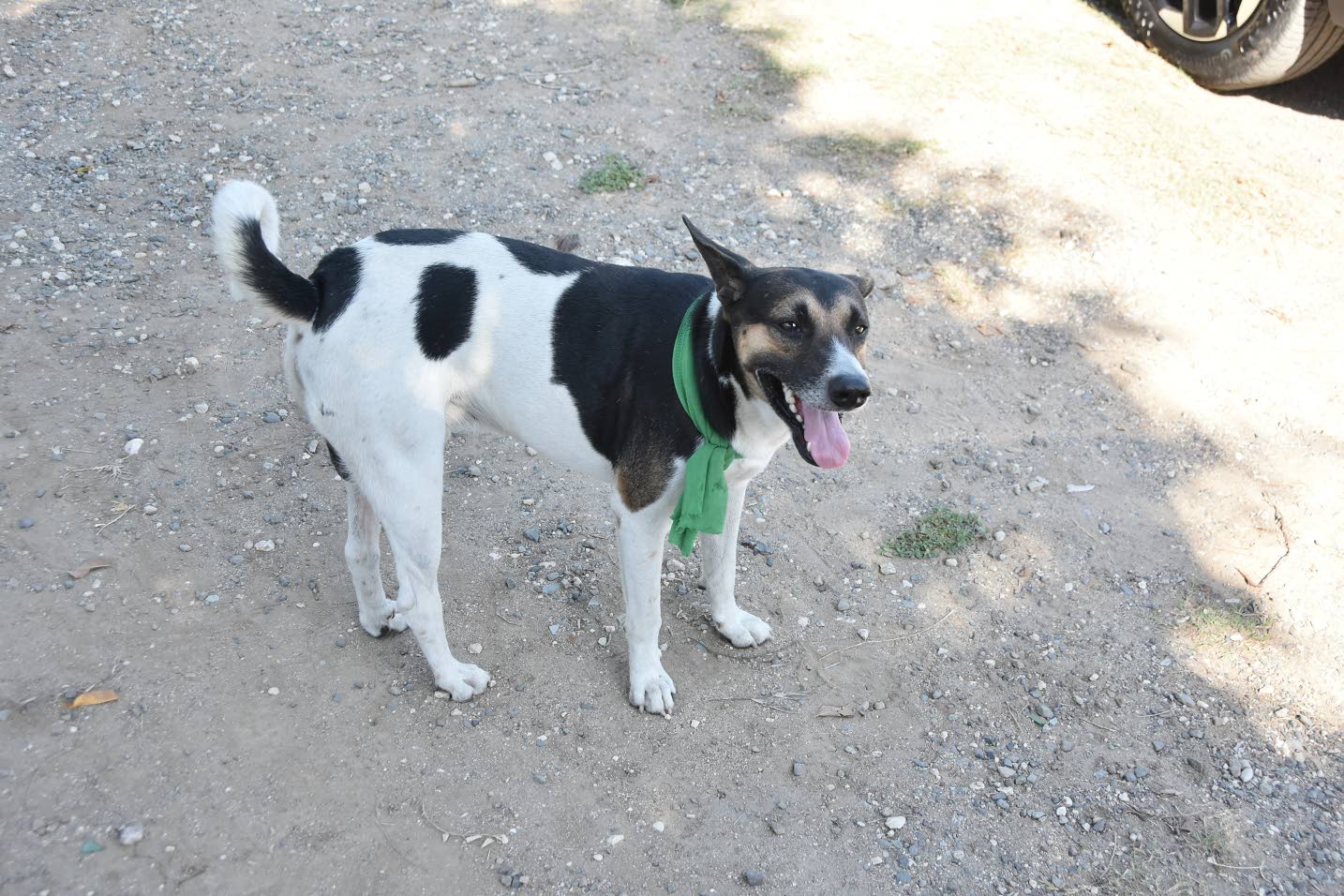 A dog sporting a Jamaica Labour Party green collar was observerd in Cedar Grove. Photo: Aston Spaulding